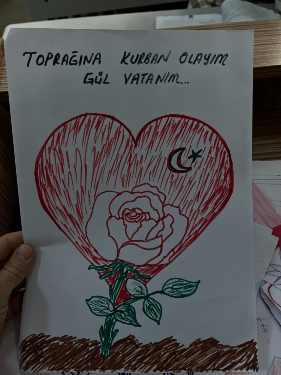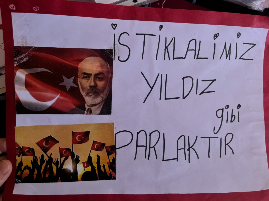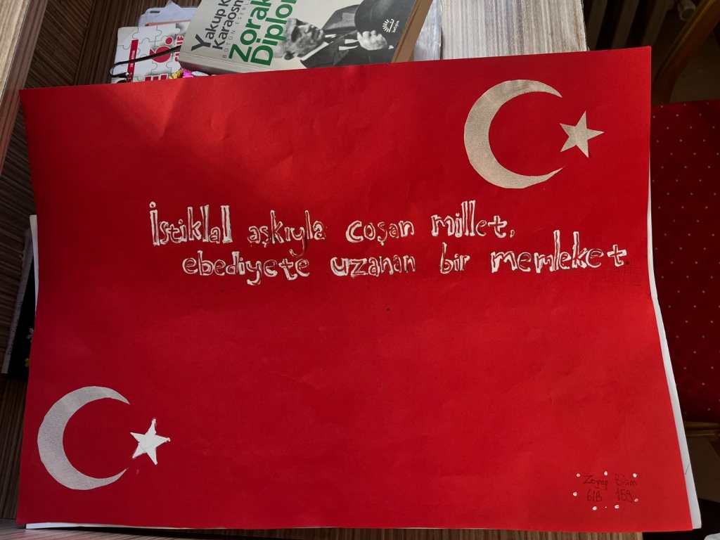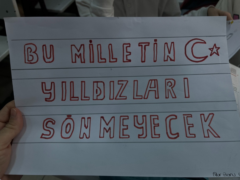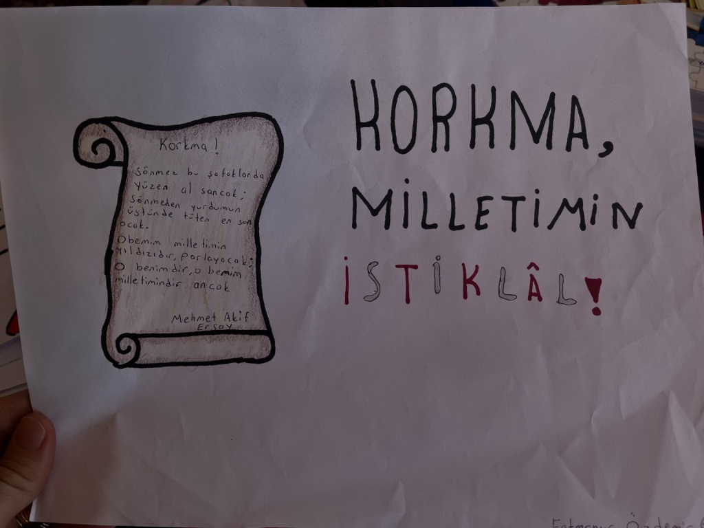 İstiklal Marşımızdan seçilen en az üç kelimenin yer alacağı anlamlı cümle ve afiş oluşturma çalışması yapılarak panolarda sergilendi.